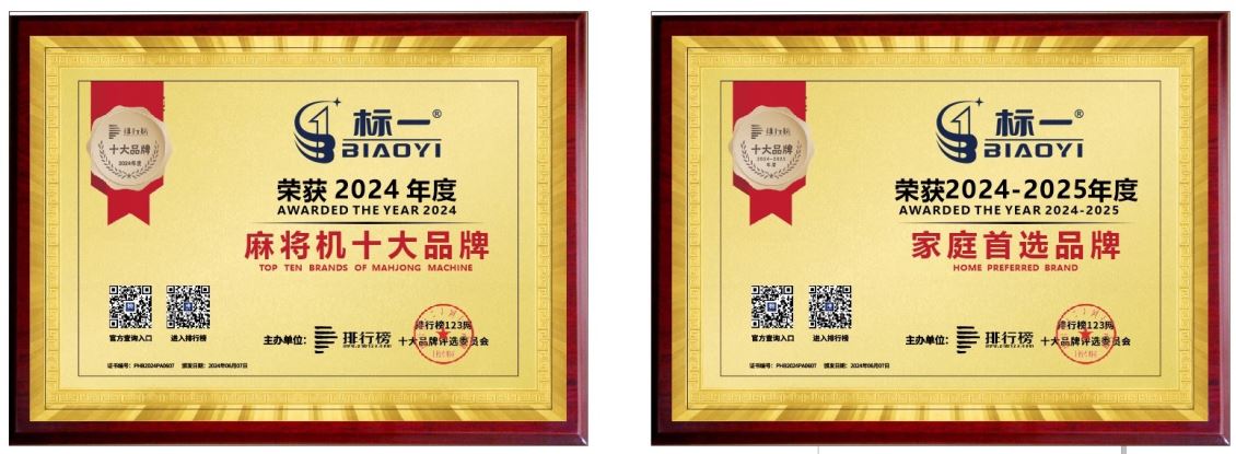 2025 年发布的麻将机十大品牌排行榜,标一麻将机是十大品牌之一,也被相关媒体评选为2024-2025年度家庭首选品牌。